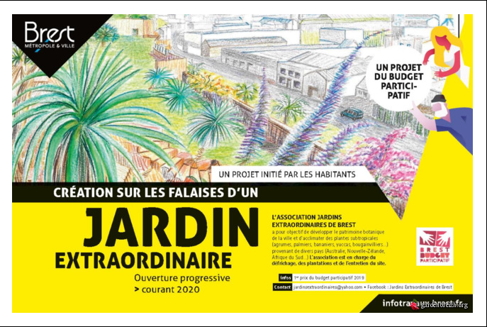 Lauréat de la saison 1 du budget participatif, le jardin extraordinaire sur les falaises se situe au port de commerce, part du bas de la rue Amiral Troude, jusqu’aux hauteurs de la rue Poullic al Lor, en contrebas de la gare de Brest.